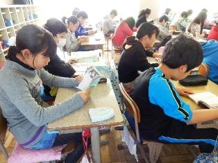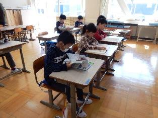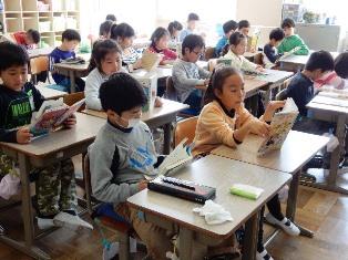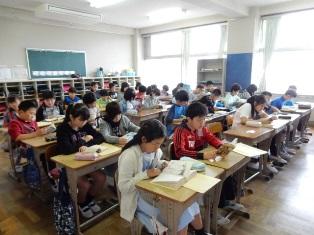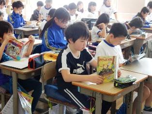 5年生は担任の先生が職員室に行っている間、静かに読書を