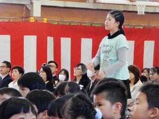 児童代表の言葉は、新6年生が最高学年として頑張りたいことがたくさんある中から、