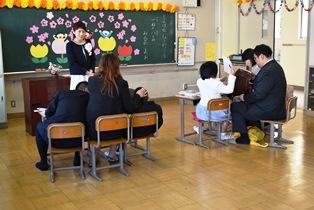 8組の様子です。お家の方に見守られて、先生のお話をしっかり