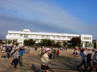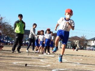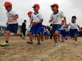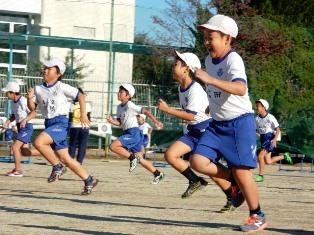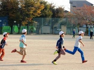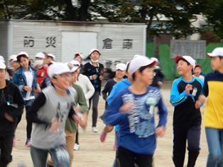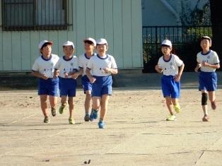 4年生の子どもたちが早くから走っています。