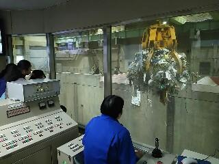 環境センターを見学しています。自分のごみがどのように処理されているのかわかりました。