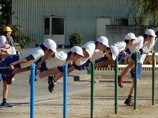 6年生は、馬跳び、ジャングルジム、のぼり棒、雲梯の