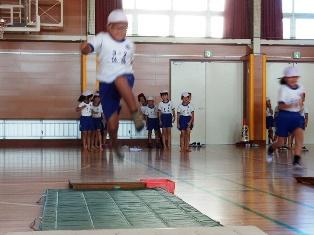 1年生は体育の授業で、跳び箱運動を行っています。