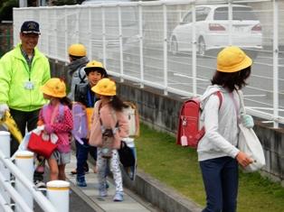 1年生はお兄さんお姉さんと手を繋いでうれしそうです。