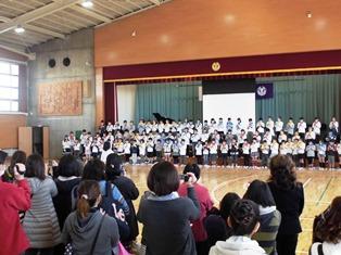 3校全員で「ふるさと」を合唱しました。とても心地よい歌声が