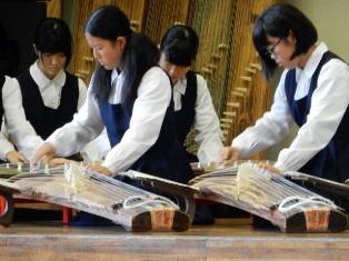 最初に箏曲部の皆さんによる演奏です。和洋の楽曲を箏の調弦を