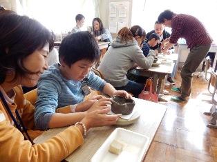 678組は合同で、お家の方と一緒に焼き物を作っています。