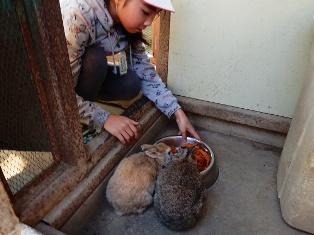 今日も飼育委員会の皆さんがうさぎの世話をしています。