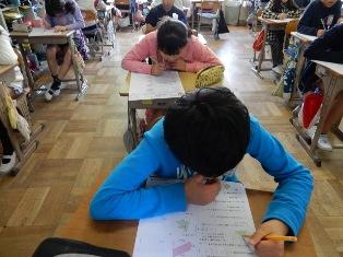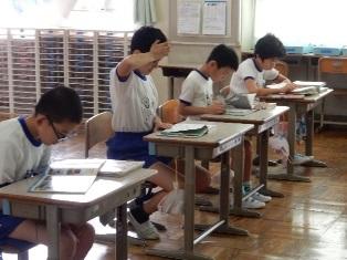 3年千は算数の授業で、確認テストを行っています。
