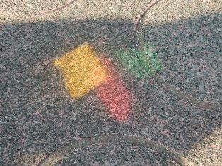 綠と黄色と赤のセロファンを被せた鏡で実験しているのは3年生です。
