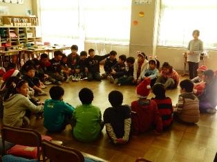 3年生は、車座になってお楽しみ会がいよいよ始まります。