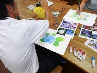 についてご指導いただきました。あじさいの下絵をご用意いただき
