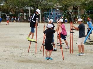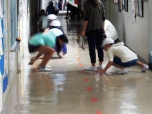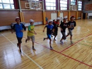 今日は雨で校庭が使えないため、体育館を走る子どもたちです。