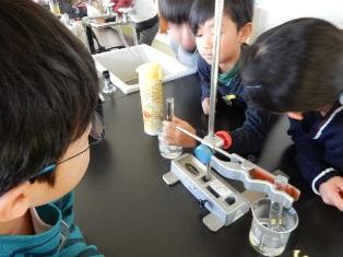 4年生は理科の授業で、昨日は空気の性質を、今日は水の