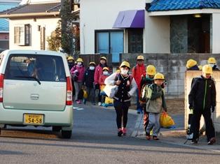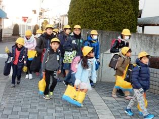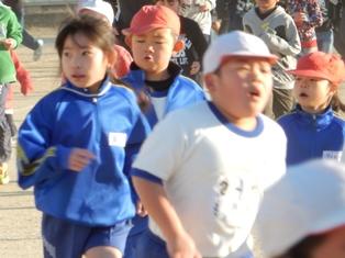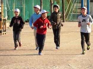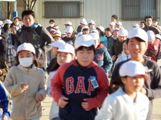 寒さのなか、朝マラソンで体をきたえる子どもたちです。