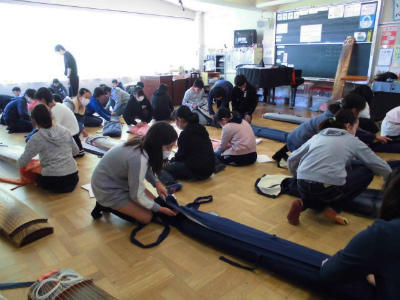 箏のしまい方も教えていただきました。背筋を伸ばし正座をして、お辞儀をすることも教えていただきました。