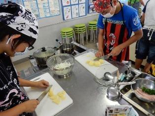 6年生は家庭科の調理実習です。粉ふきいもとジャーマンポテト。