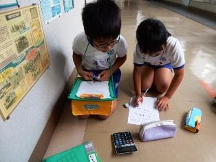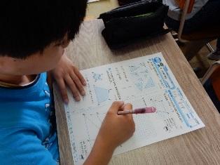 6年生は算数の授業で、拡大図、縮図の確認テスト中です。