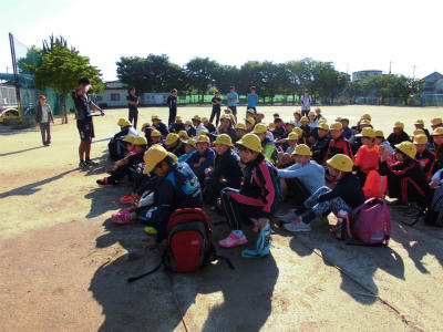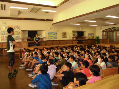 天気の関係で明日に延期された市内陸上大会。体育主任の先生から「自己ベストを出せるよう、体調を整えよう。」「ストレッチをしたり、頭の中でよいイメージつくったりしよう。」というお話がありました。全員真剣に聞いていました。