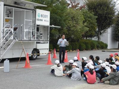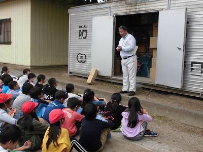 17日(木)5・6校時に、PTA主催の6年生学年活動「親子で学ぶ防災講座」を行いました。春日部市の防災対策課の3人の講師のもと、起震車「ゆらりん」の体験と防災倉庫の見学を中心に勉強しました。子どもたちは、震度6の揺れの大きさに驚き、地震の怖さを体験することができました。「自分の身は自分で守る」ために、地震の時の行動や、心得を講師の方にお話いただきとてもよい学習になりました。