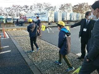 1年生が授業を終えて校庭から帰ってきました。木の葉などを