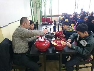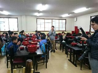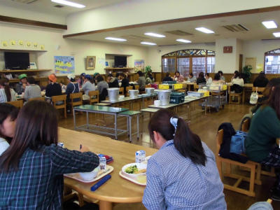 学校給食、給食室について、本校栄養士から説明させていただき、1年生の配膳の様子などを見学してもらいました。さらに、給食を試食していただきました。大盛り、おかわりとたくさんの方が、おいしく給食を召し上がっていました。