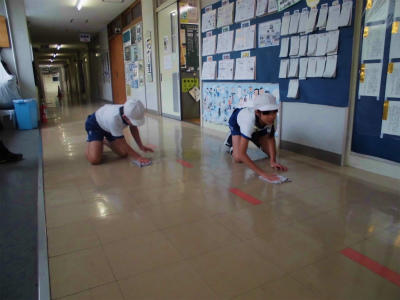 いつも6年生が職員室前の廊下をきれいにしてくれています。本日は、5年生がていねいに掃除をしてくれました。