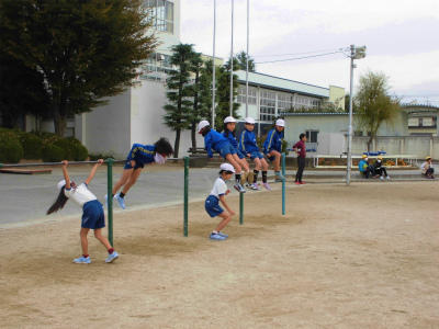 5年生の鉄棒の授業です。高学年になると技もきれいです。