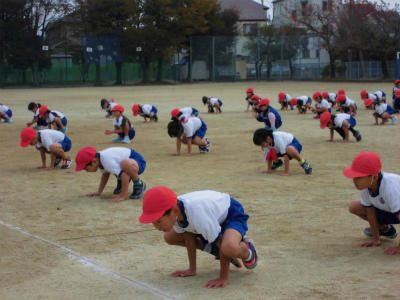 さわやかタイムを行いました。どの子も寒さの中、体を動かしています。持久走大会に向けて、頑張って走っています。