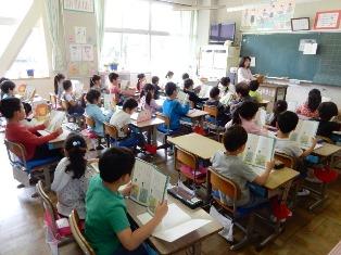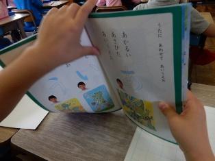 1年生は国語の授業で、「うたにあわせて あいうえお」を音読します。