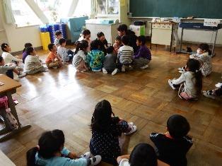 1年生は音楽の授業で、「ひらいた ひらいた」を歌いながら