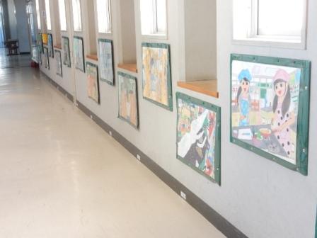 廊下には、子どもたちの表現豊かな図工の作品が掲示されています。