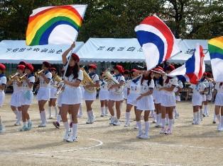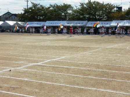 豊春小学校の金管バンドクラブ、バトンクラブの皆さんの先導で、