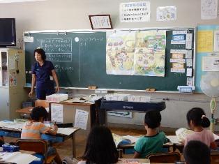 2年生は国語の授業で、漢字の書き順を指で確認しています。