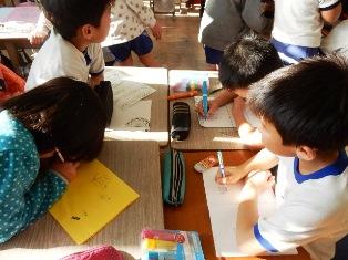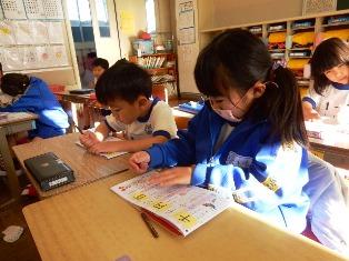 1年生は国語で、漢字の学習です。集中して練習しています。
