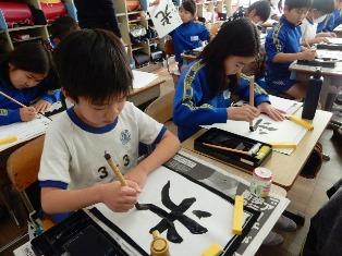 3年生は書写で、毛筆で「光」という漢字を書いています。