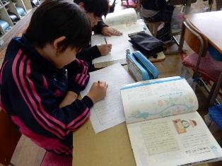 作文を書いていました。1年生の時に6年生に優しく接してもら