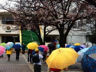 冷たい雨の降る朝ですが、今日も5年生を中心に事故なく登校する