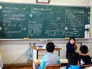 4年生は算数の小数の計算です。0.8☓3などの計算の仕方を