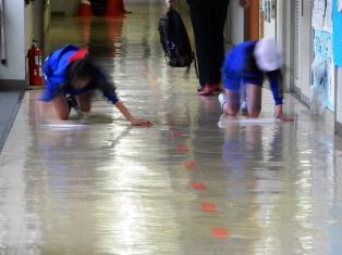 今朝も6年生が廊下を掃除しています。お陰で、今年も廊下は