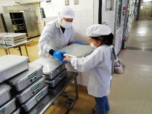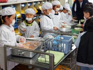 しばらくぶりの給食に、子どもたちは嬉しそうに準備をしていました。