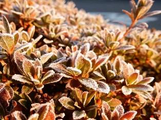 今日はかなり冷え込み、植木や縄跳び板に霜が降りていました。