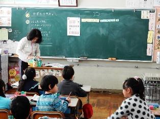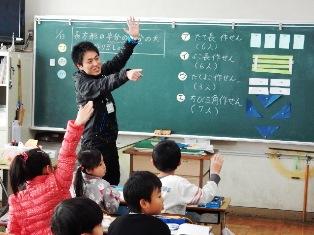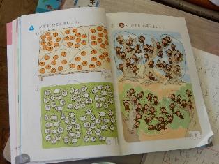 1年生の算数の授業です。教科書の左下の羊の数と右のサルの