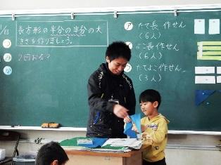 2年生は算数の授業で、これは窓ガラスの大きさを測っている