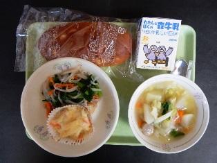 パインパン、グラタン、春雨サラダ、ポトフ、牛乳です。