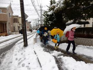 転んでしまった子どももいましたが、事故なく登校することができました。