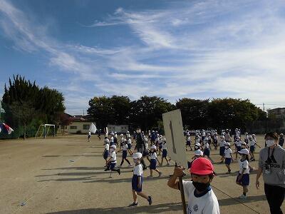 31日(土)に運動会が開催されます。その運動会まであと一週間です。今日の朝に全体練習(1・3・6年)を行いました。開会式の入場、式典、退場までを確認し、みんなしっかりできました。