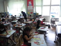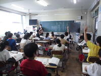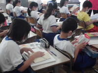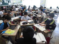 1年生の教室では担任の説明をよく聞きながらタブレット操作の学習、他の学年ではタブレットを調べ学習や制作活動にも活用しています。国語(4年生)ではごんぎつねの学習をしています。ノートには自分の考えを書き、積極的に発言しています。図工、体育、音楽の学習にも一生懸命に取り組み、力をつけています。