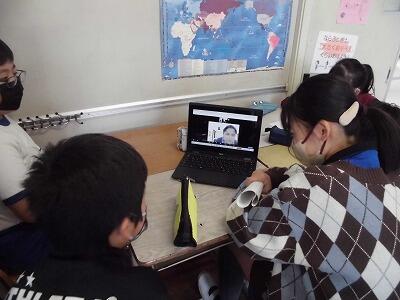 6年生がオンラインを使って、6人のALTと会話を楽しみました。