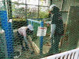 今日も飼育委員会の皆さんがうさぎの世話をしています。